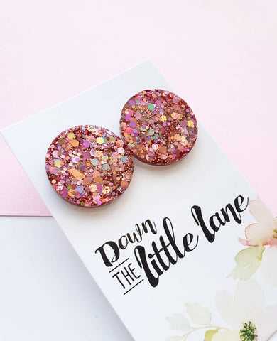 "Mega Moon Studs" in Party Pink glitter